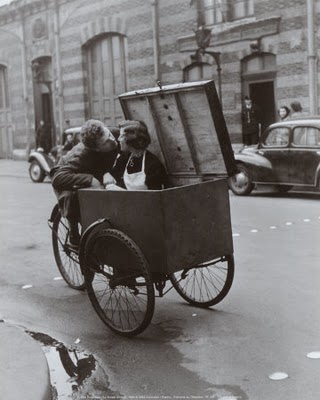 La foto es del maestro Robert Doisneau, año cincuentaypico, París. Es curiosísimo como hoy las fotos me han llevado a Doisneau. La otra que posteé de la calesita, lo mismo, derechito inspirada en el viejo.